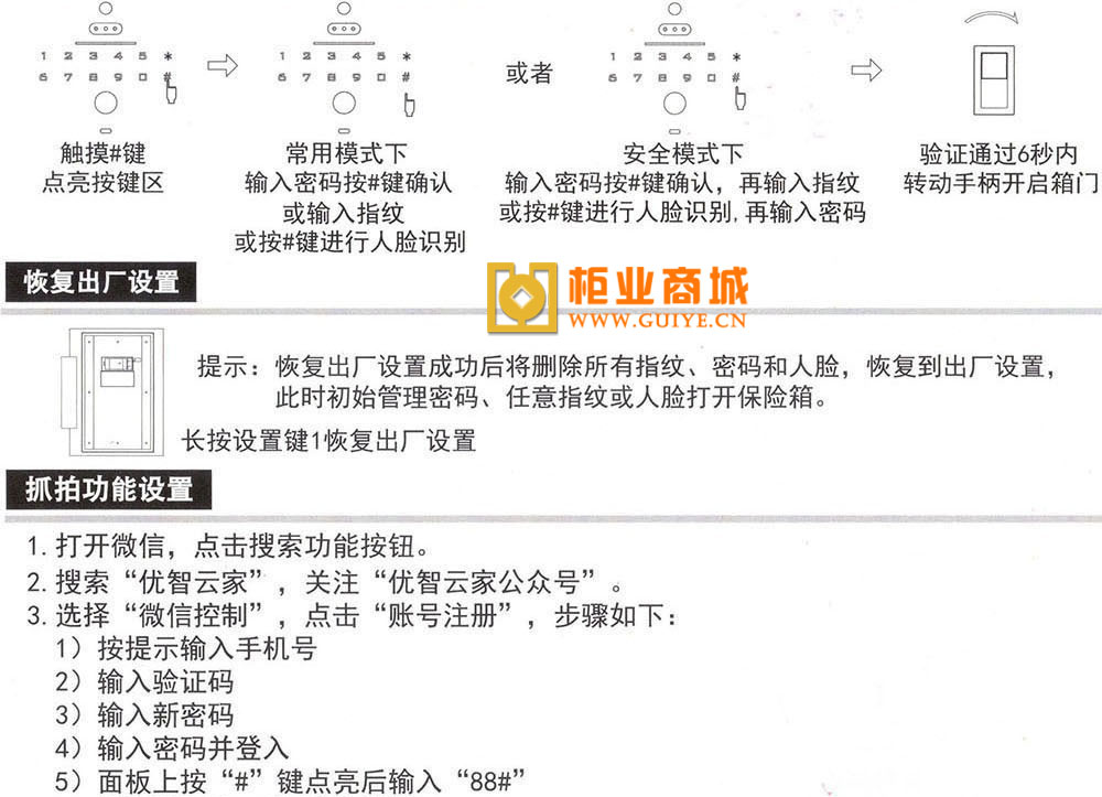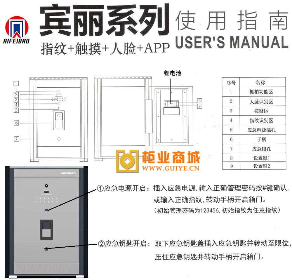 艾斐堡保险柜-宾丽人脸系列使用说明
