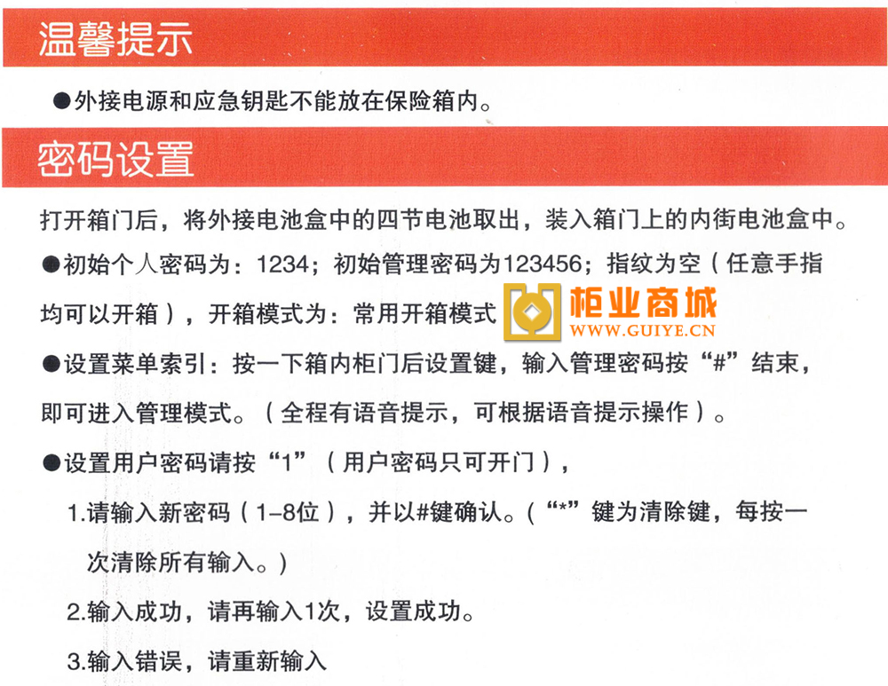 金管家保险柜使用说明