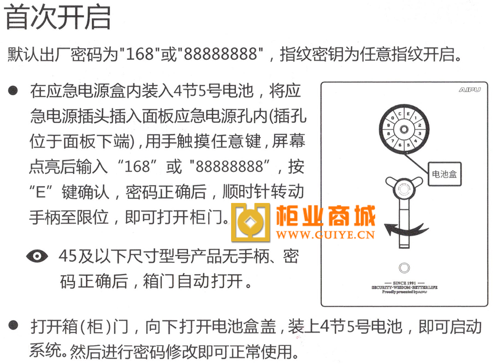 艾谱保险柜-尊睿VI指纹系列使用说明