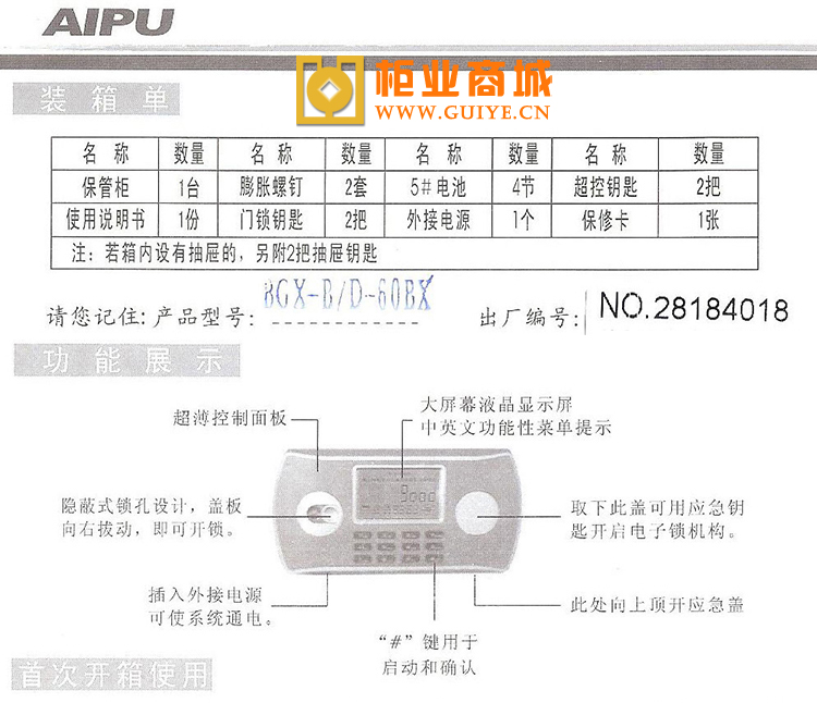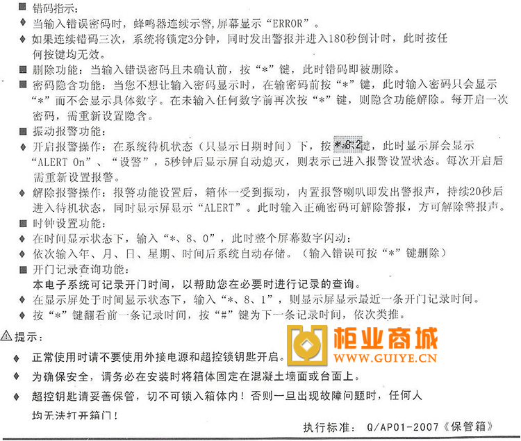 艾谱保险柜使用说明