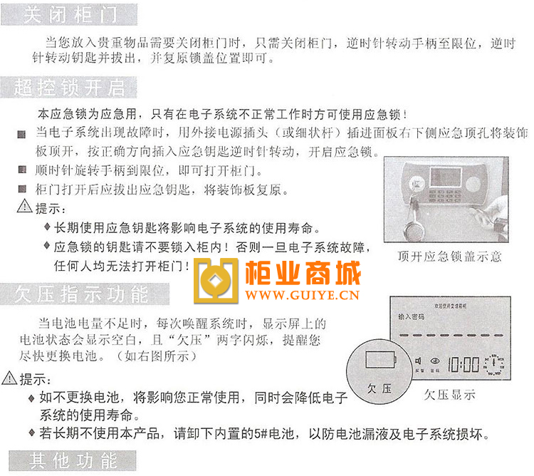 金管家保险柜使用说明