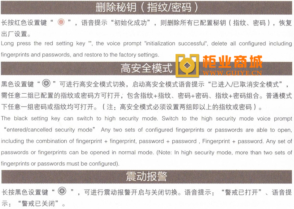 金管家保险柜使用说明